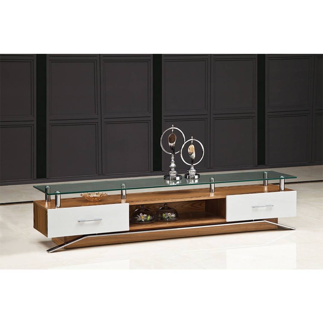 From binging your favorite show to hosting the big game, TVs are a must-have item in our home. So give it the perfect perch with this modern TV stand! Two side drawers open up to reveal storage space with adjustable shelves to store games and blankets, while two middle shelves are perfect for other living room essentials. This design also lends your space a little modern appeal and showcasing drawer.