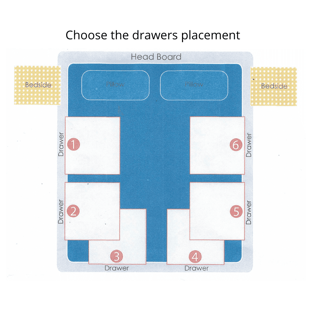 Our NZ Made Bed Base is an ideal solution for your perfect sleep. It is simple, elegant and a great addition to your bedroom and spare room. NZ Made king bed bases are suitable for all types of mattresses and come in a range of stylish fabrics – no valance needed! All bases are also designed according to NZ Made standard headboard fittings and bolts. Simple leg assembly (feet) is required. It comes with storage drawers. Choose your drawer side according to our drawer diagram. King bed base with drawers are the life saver for limited space in your living space.