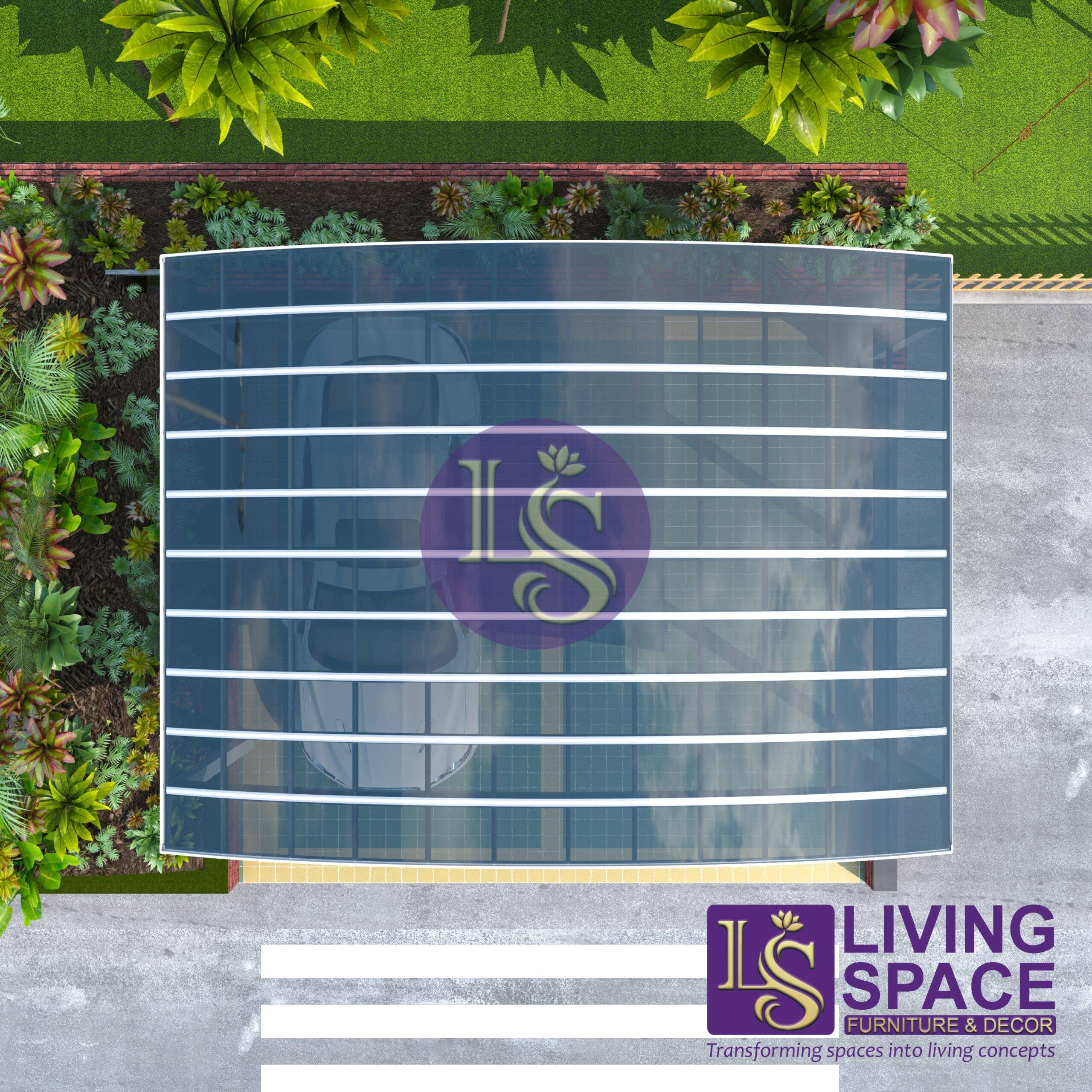 Living Space Aluminum and Polycarbonate M Shape Double Carport, using polycarbonate sheet with anti-UV coating protect your car paintwork from fading and car seats from discoloring.